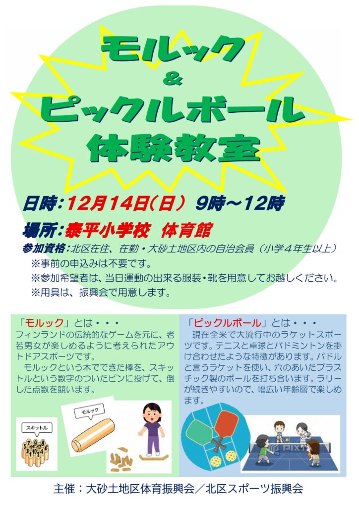 大砂土地区体育振興会 ニュースポーツ大会のご案内