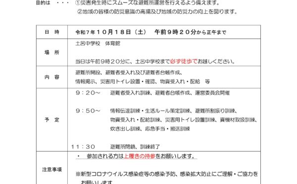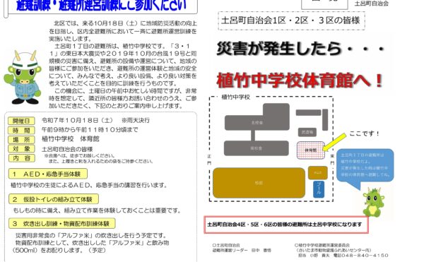10月18日(土)土呂町2丁目地区防災避難訓練のご案内