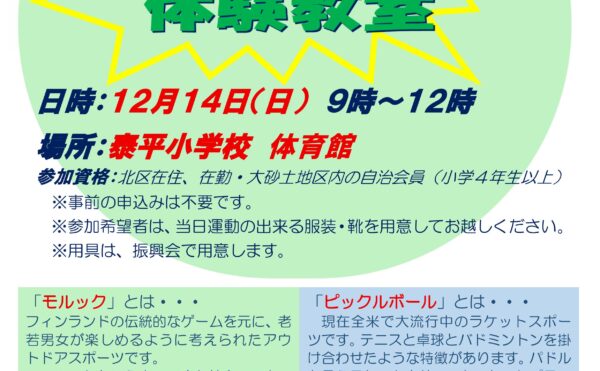 大砂土地区体育振興会 ニュースポーツ大会のご案内